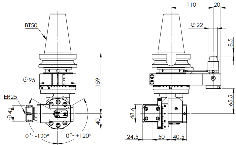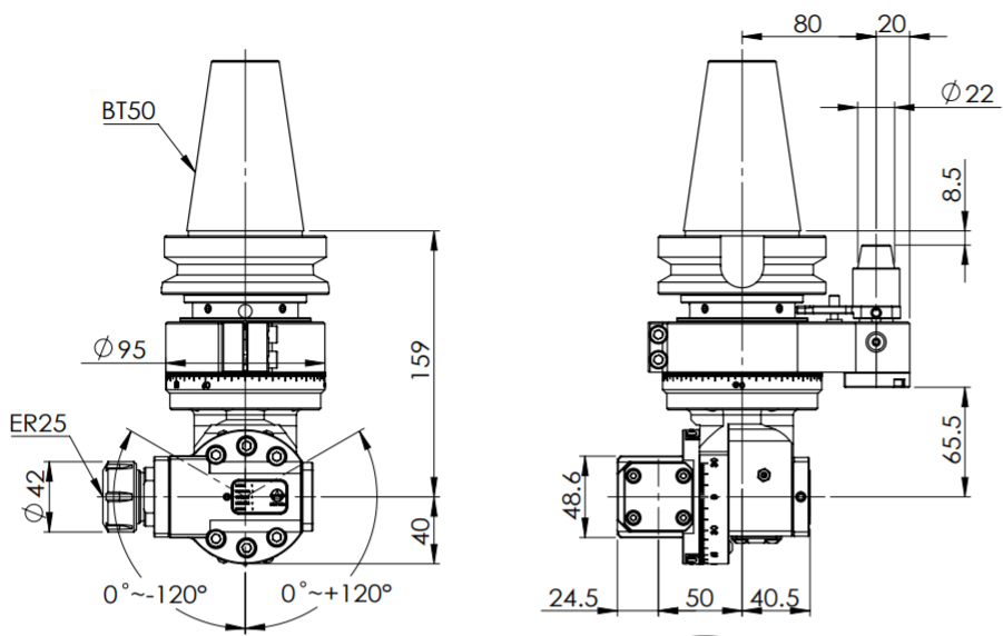 ◎ BT50-ER25 Universal Angle Head (AHL Type)