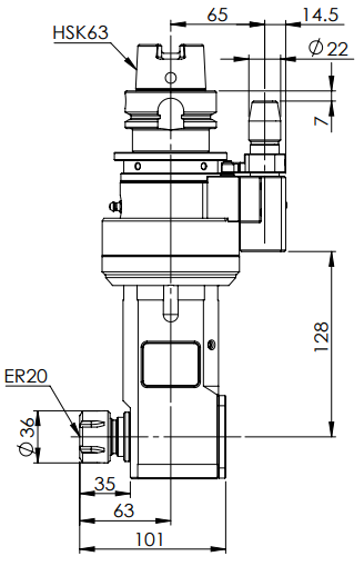 ◎?HSK63-ER20 90° Angle Head-Longer (AHD Type)