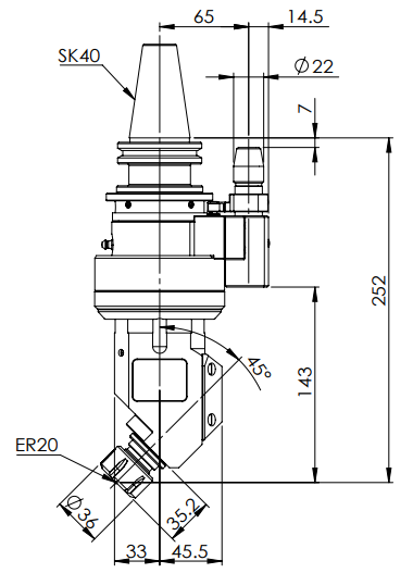 ◎?SK40-ER20 45° Angle Head (AHD Type)