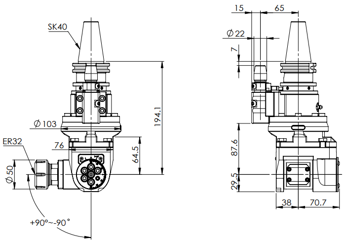 ◎ SK40-ER32 Universal Angle Head (AHG Type)
