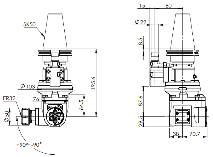 ◎ SK50-ER32 Universal Angle Head (AHG Type)